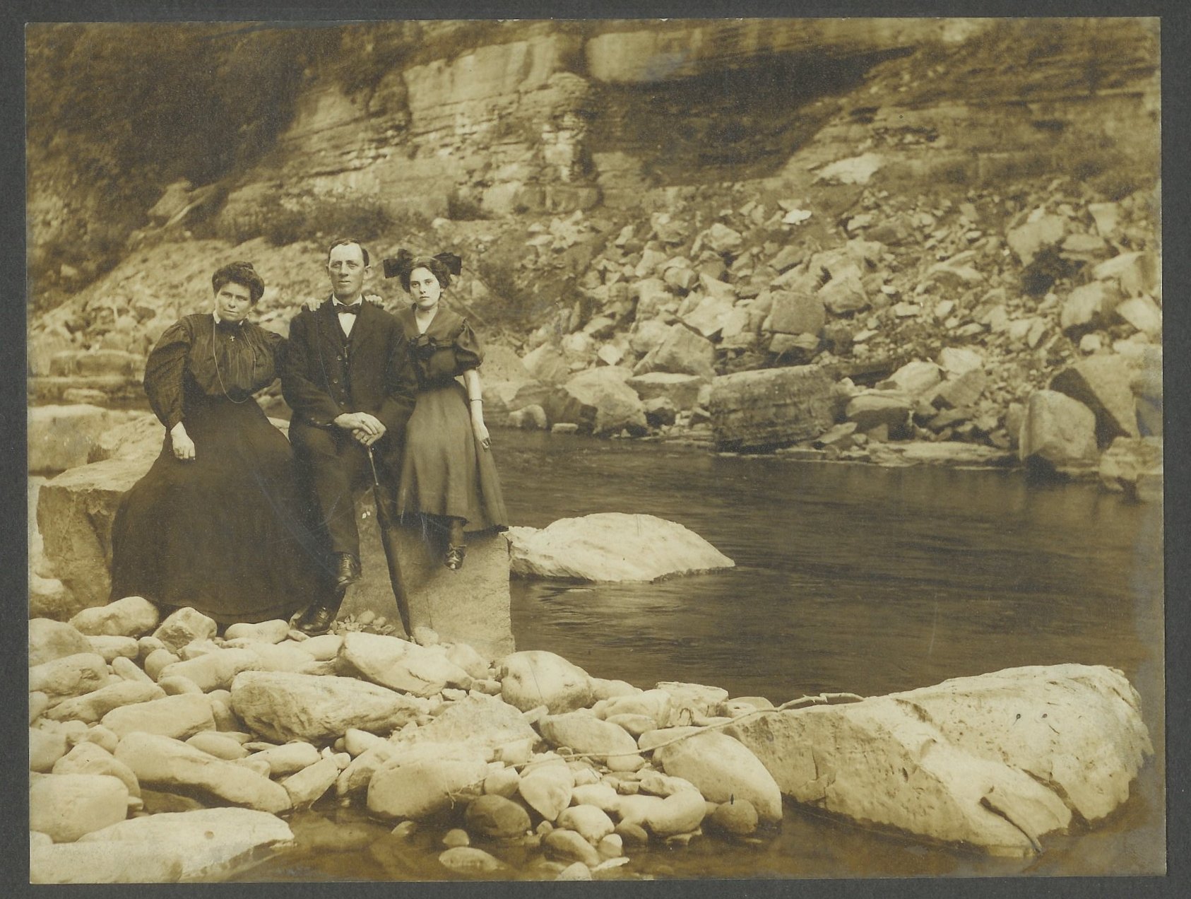 The father's umbrella and multiple gold rings, and the daughter's gold bracelet are nice touches in this wonderful picture. Obviously Victorian-era hikers were made of sturdier stuff than we are today... but maybe not. A few years ago Amy and I were visiting Bryce Canyon and we went on an afternoon hike along one of the longer trails. We'd been hiking in the back country of southern Utah the week before, and so we automatically put on our big hiking boots, and carried our backpacks with snacks and plenty of water. You're unlikely to get into too much trouble in Bryce, but hey, why take chances? Toward the end of the hike, on the way up, out of the canyon, we passed a group of French women tourists on their way down. They were all immaculately dressed and coifed, and many were wearing fashionable black pumps. Chatting happily with each other and evidently having a grand time, they could just as easily have been walking down 5th Avenue in New York. As we trudged by them in our boots and backpacks, we felt terribly over-dressed. Maybe it's all just a state of mind...
